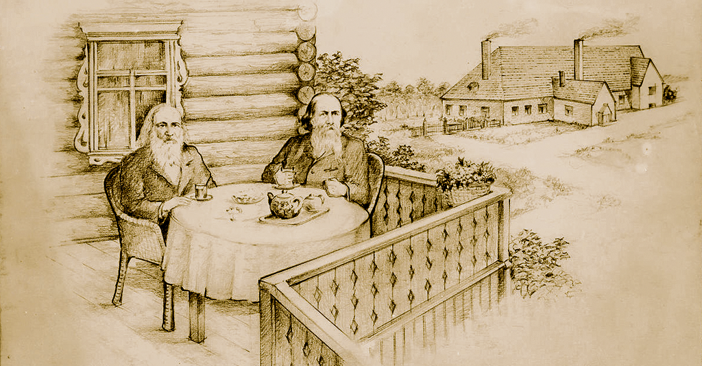 Д.И. Менделеев и Н.В. Верещагин в Едимонове в 1869 году. Рисунок В.И. Бландова