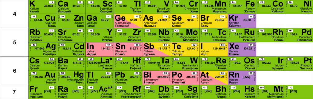 Как мы упоминали ранее, таблица Менделеева похожа на многоквартирный дом, каждая клетка химического элемента – это «квартира». «Квартиры» строго распределены по «этажам», которые называются периоды.
