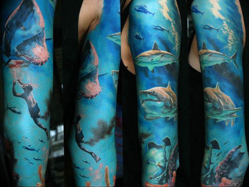 - Тату с акулой на предплечье можно увидеть в качестве талисмана у моряков, пловцов, серфингистов, словом, всех тех, чья профессия связана с морем.