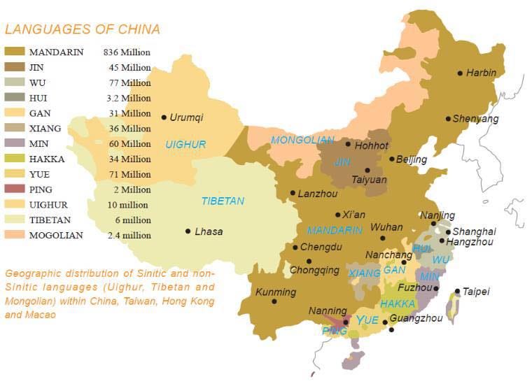 - хакка (наименее понятный для большинства китайцев диалект, на котором говорят субэтносы на юге страны);