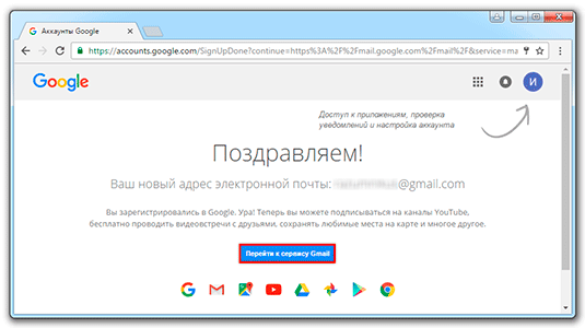 Вот и всё! Учетная запись в Гугле создана.