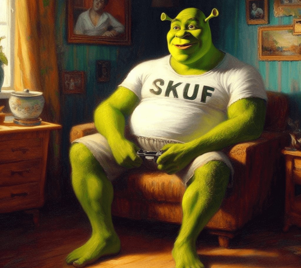 Этим дело не ограничилось: вскоре на форуме начали появляться мемы про скуфов, а форумчане активно придумывали другие производные этого слова: «соскуфиться» (стать неопрятным, располнеть), «скуфыня» (девушка-скуф), «скуфидон» (то же, что и скуф) и другие. А мемы про скуфов теперь создают все, кому не лень, в том числе при помощи нейросетей. Так, нейросеть Midjourney сгенерировала изображение Шрека в образе скуфа: