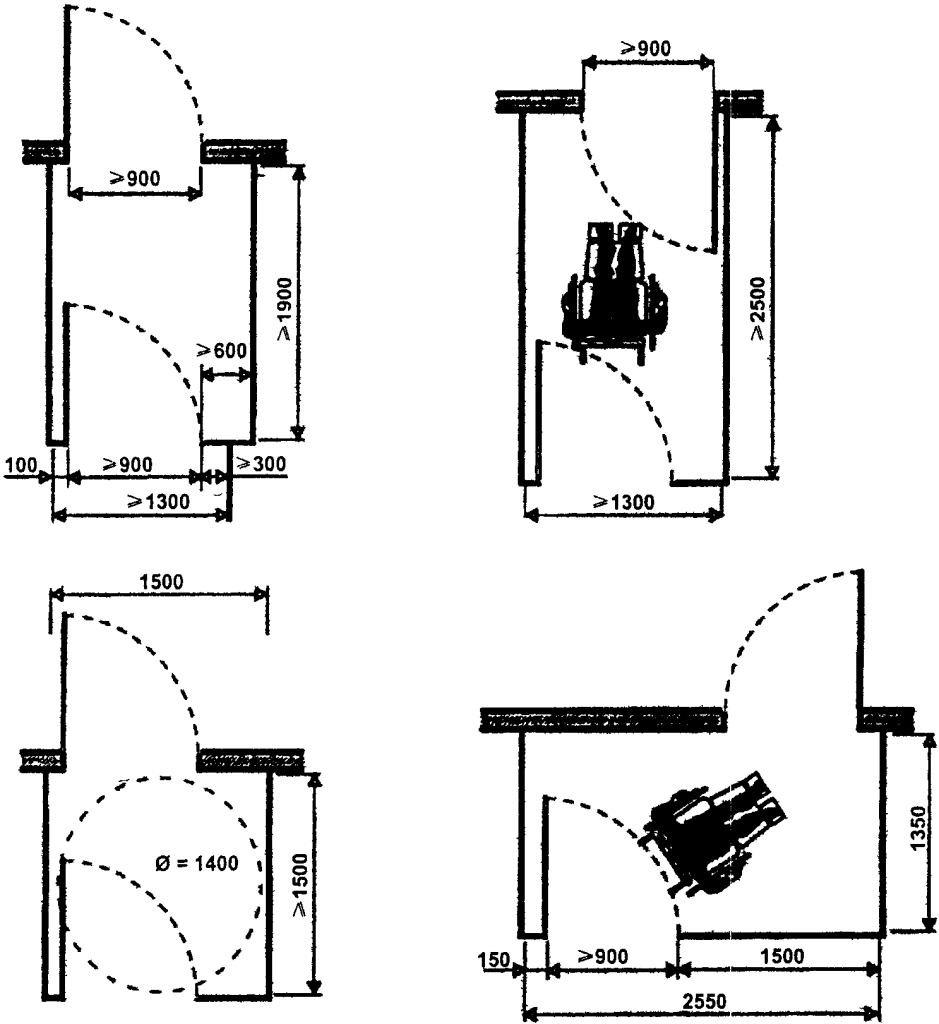 - Площадь участка для разворота в коляске как минимум достигает 1,5 кв. м.