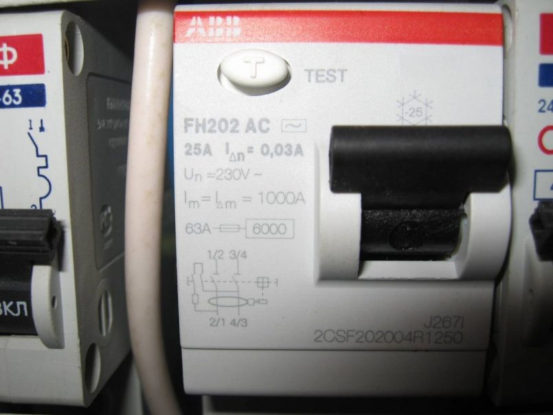 Для контроля исправности УЗО на передней панели есть кнопочка «тест», которая замыкая резистором цепь, имитирует появление дифференциального тока. Если УЗО при нажатии на кнопку тест отключилось — то оно исправно. Проверку исправности УЗО производители рекомендуют производить ежемесячно (какие оптимисты!), ну или я реалистично говорю о тесте раз в пол года.