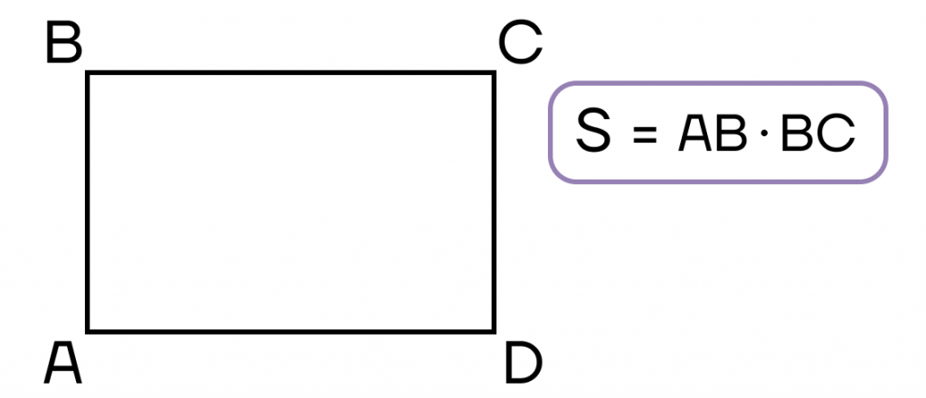 - Площадь прямоугольника равна произведению двух соседних сторон.