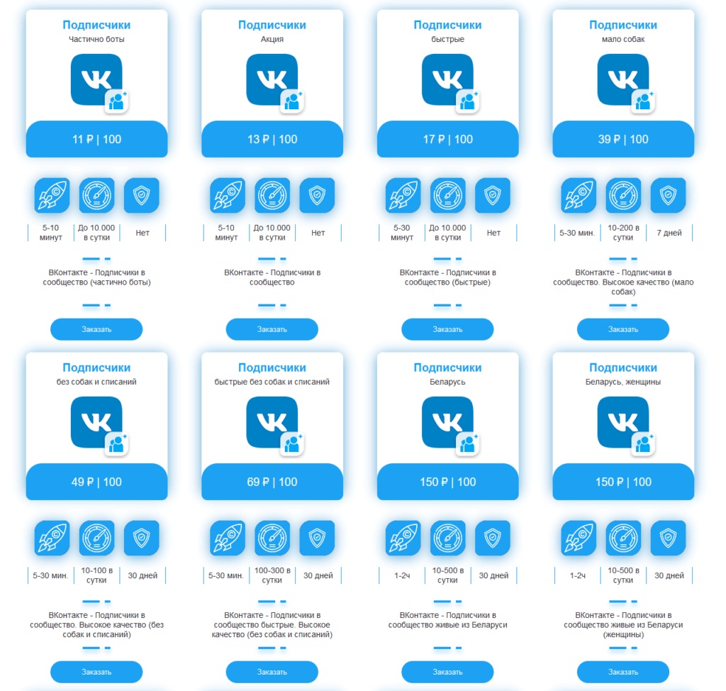 На Smmlaba предусмотрено 18 тарифов для накрутки подписчиков в ВК. Стоимость зависит от нескольких факторов:
