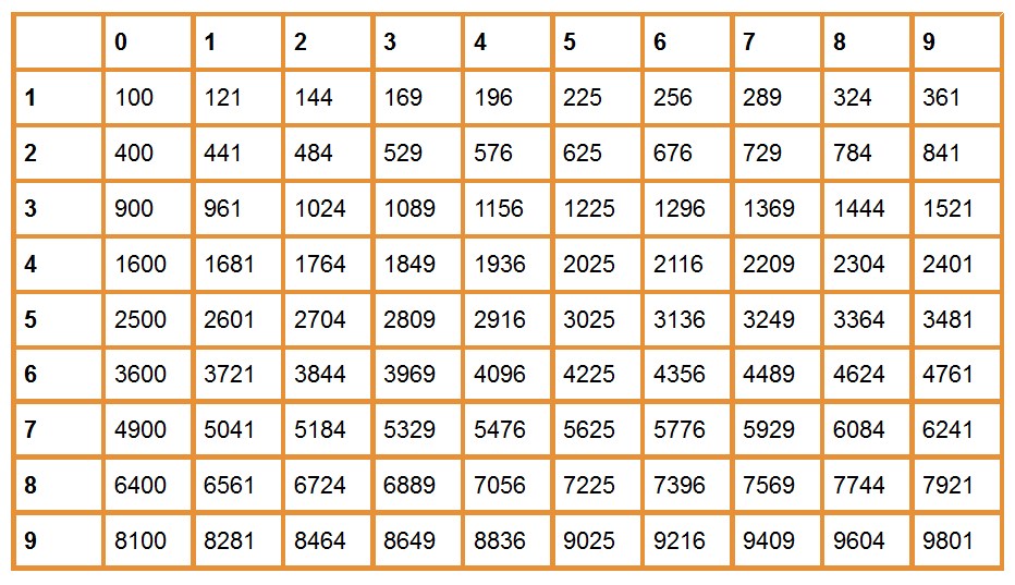 Но, как вы можете заметить, таблица заканчивается на числе 9801. А это, согласитесь, не самое крупное число из тех, что могут вам попасться в примере.