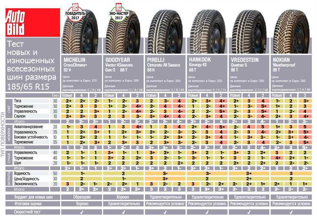 Тип шин также имеет важное значение. Существуют летние, зимние и всесезонные шины