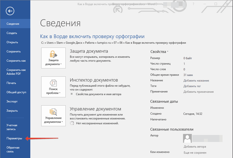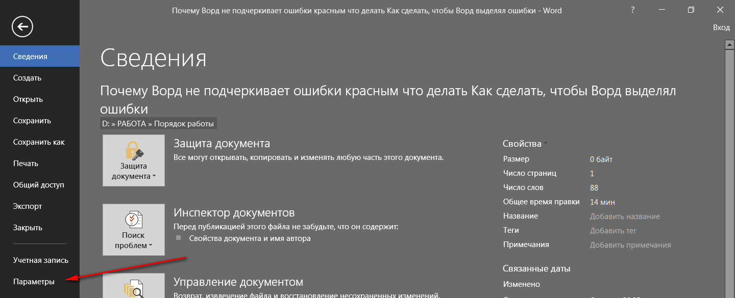 2. Найдите и откройте там пункт “Параметры” (ранее “Параметры Word”).