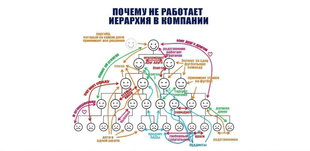 Такая же проблема возникает при передаче информации по иерархии в компаниях. Когда люди начинают что-то друг другу передавать, это все разваливается. И между первым человеком и даже третьей линией уже меньше 30% понимания