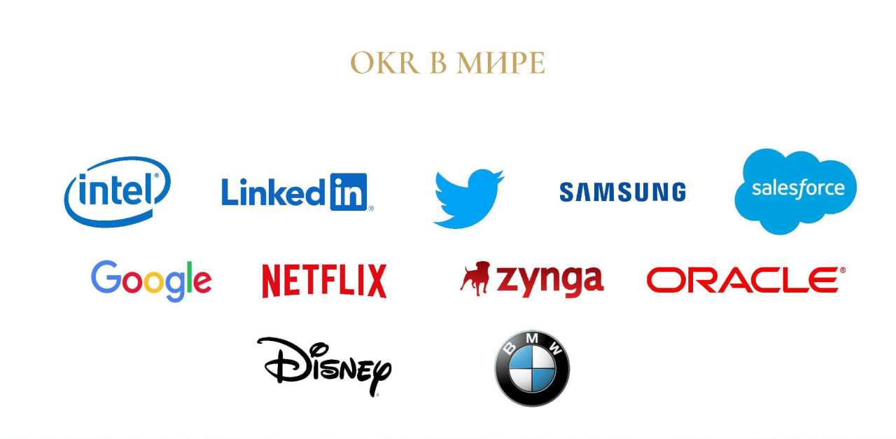 Именно таким я увидел для себя OKR в самом начале пути, когда изучал практику известнейших компаний, названия которых приведены на слайде.