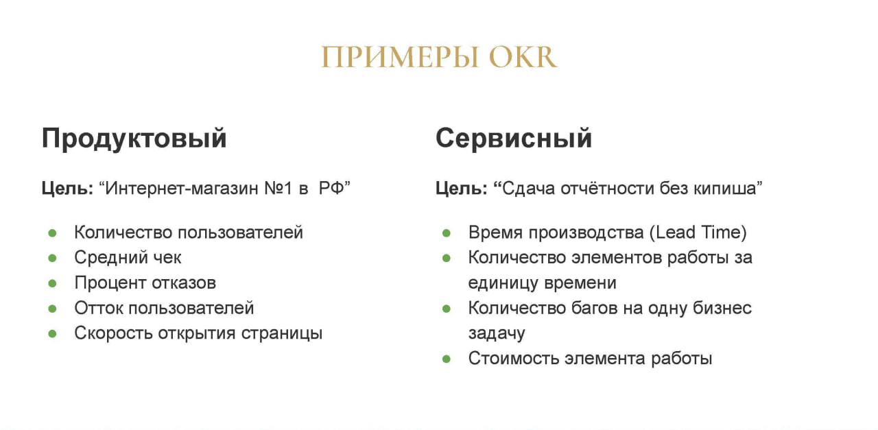 У всех разные бизнесы, но для любых бизнесов OKR прекрасно подходит. Потому что он работает как единая система, по которой гребет вся команда. Это единая цель. И для той, и для другой цели OKR прекрасно применим.