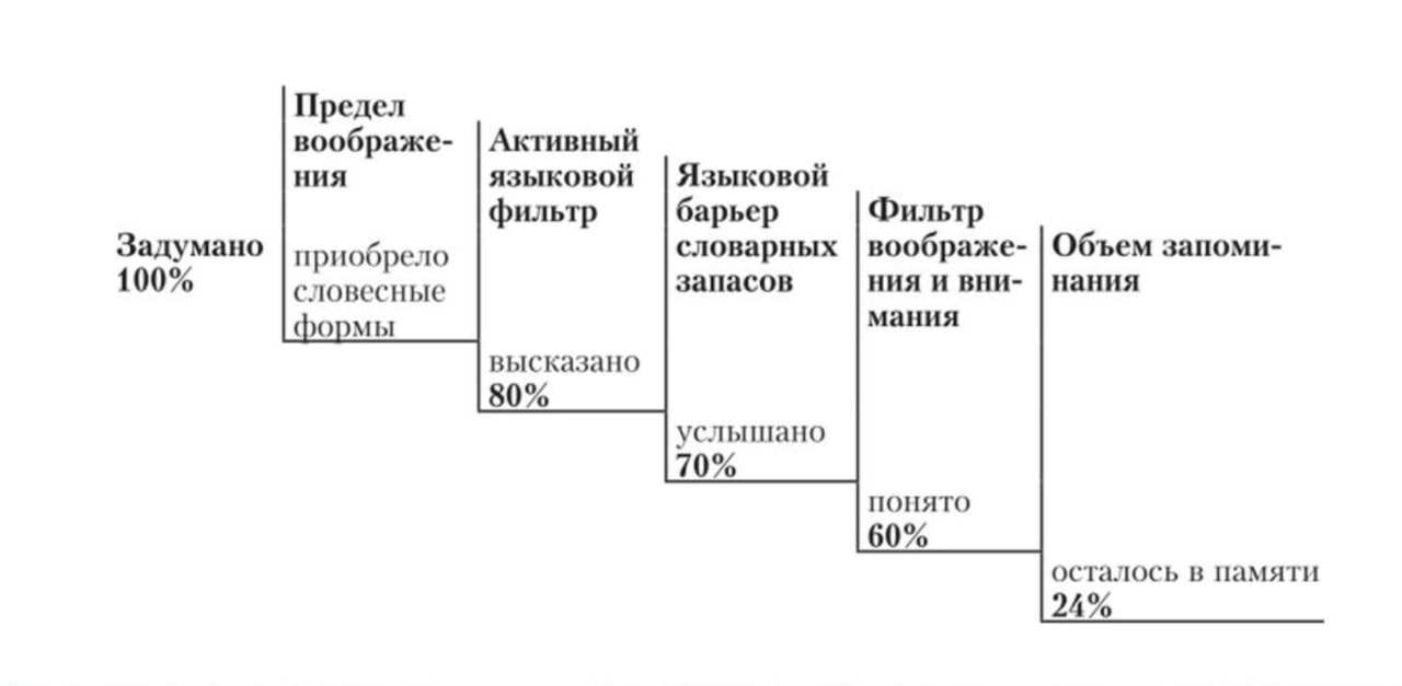 Дальше срабатывает языковой барьер словарных запасов – это то, что вы услышите. Т.е. я доношу только 80% информации, а вы меня слышите еще хуже. Потому что у нас есть различия в понимании словарного запаса.