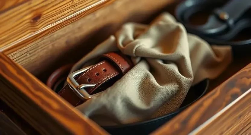 Храните кожаный ремень в свернутом виде или повесьте его на вешалку. Используйте чехлы или мешочки для защиты от пыли и света. Не храните ремень в полиэтиленовом пакете, так как это может привести к образованию плесени. Избегайте хранения ремня вблизи нагревательных приборов или источников влаги.