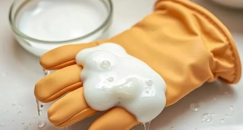 | Мягкое мыло | Легкая очистка | Развести в воде, протереть перчатки | 5 минут |