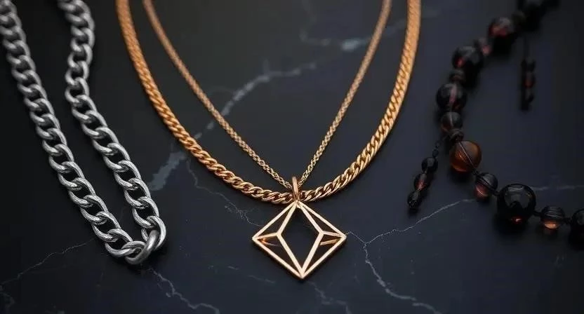 | Массивные цепи | Крупные звенья, смелые формы, часто из золота или серебра. | (Фото-пример) |