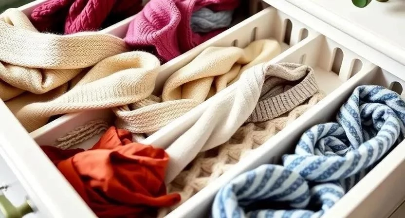 Как защитить шарфы от пыли? Используйте коробки, контейнеры или тканевые мешочки для хранения шарфов.