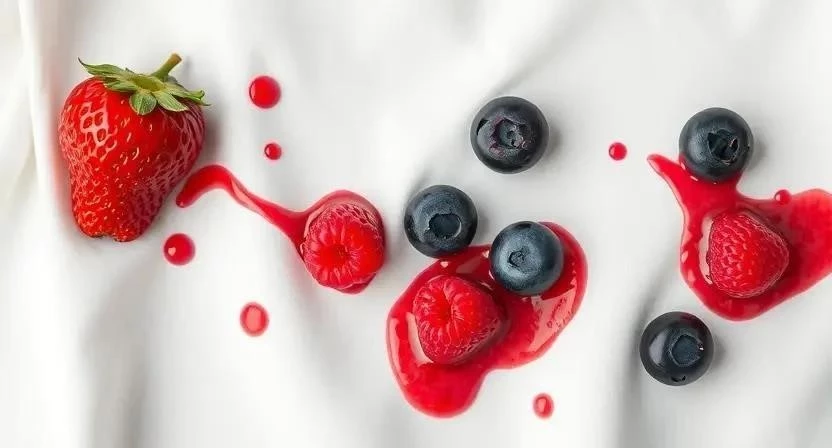 Не все фруктовые соки одинаково легко удаляются с ткани. Самыми коварными считаются гранатовый, вишневый и яблочный соки. Гранатовый сок содержит танины, которые быстро проникают в волокна ткани и оставляют стойкий розовый оттенок. Вишневый сок, благодаря высокому содержанию пигментов, также склонен к образованию трудновыводимых пятен. Яблочный сок, особенно если он не свежий, может содержать сахар, который при высыхании делает пятно более липким и сложным для удаления. А вот пятна от апельсинового или грейпфрутового сока обычно удаляются легче, так как содержат меньше красящих веществ.