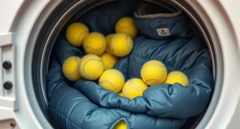 Итак, мы подготовили пуховик и выбрали моющее средство. Теперь можно приступать к стирке. Загрузите куртку в стиральную машину, убедившись, что барабан не перегружен. Выберите деликатный режим стирки с температурой не выше 30 градусов. Установите минимальное количество оборотов отжима – не более 600. Добавьте в барабан несколько теннисных мячиков. Они помогут взбить пух во время стирки и предотвратить его сбивание. Я всегда добавляю три-четыре мячика, и это действительно работает. После стирки аккуратно достаньте пуховик из машины и переходите к сушке.
