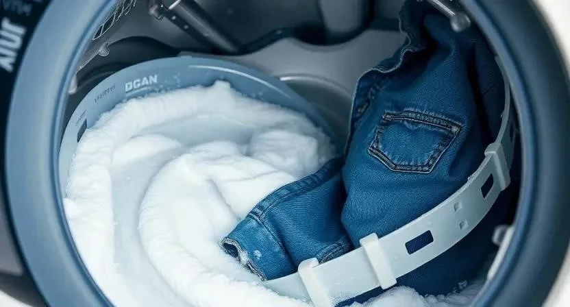 - Добавьте небольшое количество средства для стирки джинсовых вещей.