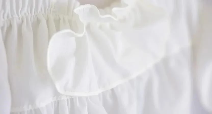 Как удалить пятна с одежды с воланами? Предварительно обработать пятно специальным средством для деликатных тканей.