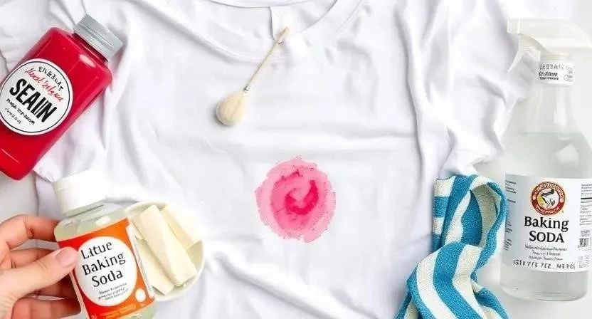 - Сода: Смешайте соду с небольшим количеством воды до образования пасты. Нанесите пасту на пятно и оставьте на 30 минут. Затем аккуратно потрите щеткой и смойте водой.