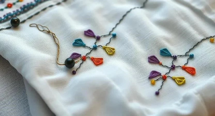 Если отвалился бисер или стразы, не отчаивайтесь! Вы можете починить вещь самостоятельно. Вам понадобятся нитки в тон ткани, игла, бисер или стразы. Аккуратно пришейте украшение на место, используя прочный шов. Я всегда держу под рукой небольшой набор для ремонта одежды, чтобы быстро устранить мелкие повреждения.