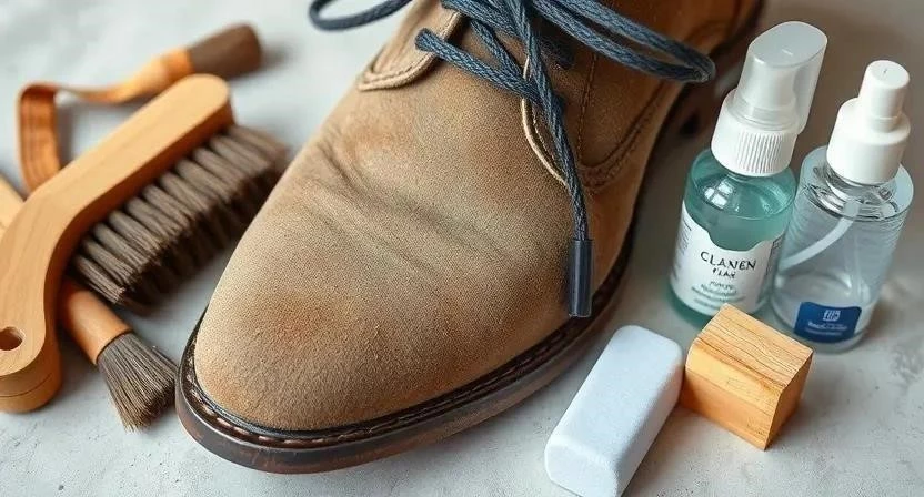 Замша – деликатный материал, требующий особого подхода. Я помню, как однажды неправильно почистил свои замшевые ботинки и они потеряли свой первоначальный вид. С тех пор я всегда использую только специальные средства для замши. Для начала удалите пыль и грязь с помощью щетки с резиновыми щетинками. Затем используйте специальный спрей для чистки замши, следуя инструкции на упаковке.