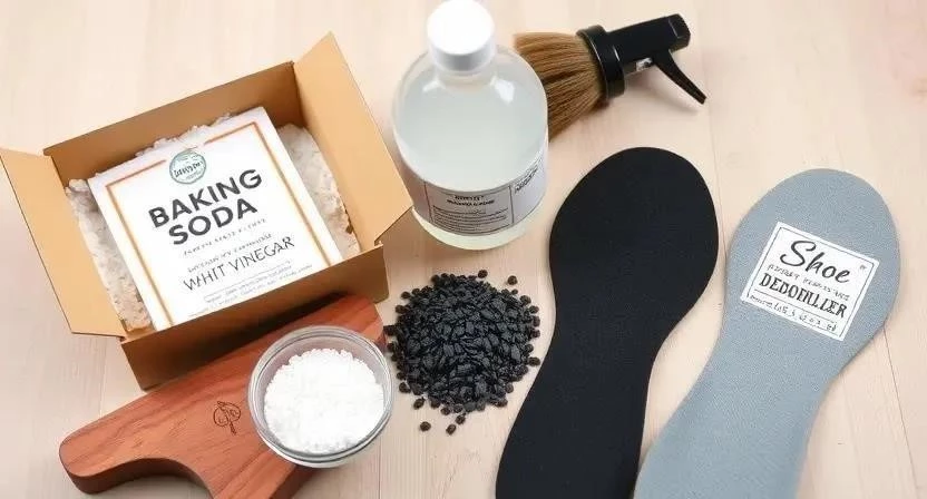 - Использование народных средств: Посыпьте внутрь обуви соду и оставьте на ночь. Или протрите внутреннюю поверхность раствором уксуса и воды (1:1).