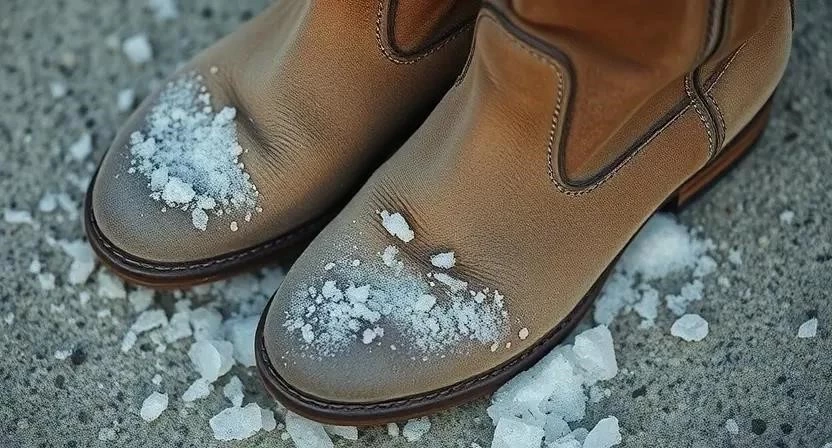 - Чистка уксусным раствором: Смешайте уксус с водой в пропорции 1:1. Смочите мягкую ткань в растворе и аккуратно протрите обувь, чтобы удалить солевые разводы. После очистки протрите обувь чистой влажной тканью.
