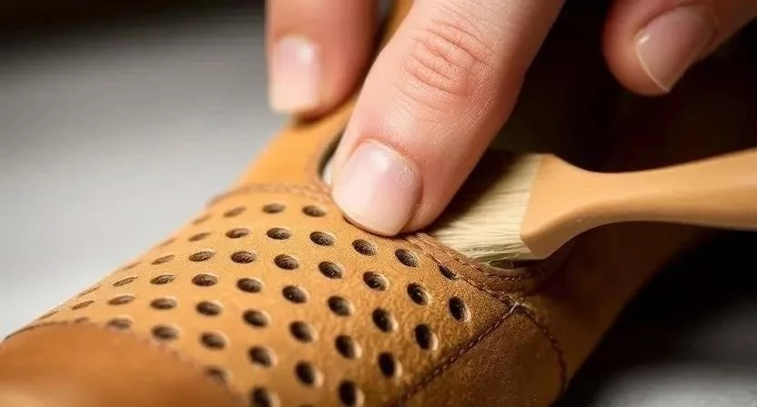- Глубокая чистка гладкой кожи: Нанесите небольшое количество пены-очистителя на мягкую губку и аккуратно протрите поверхность обуви, уделяя особое внимание отверстиям перфорации.