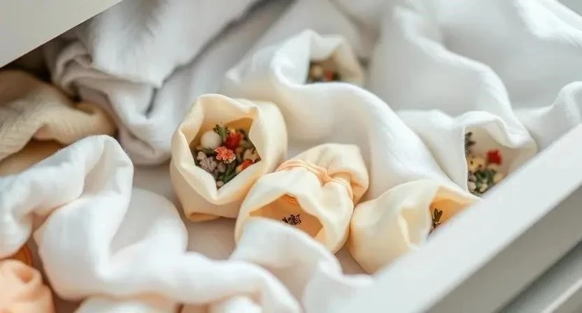 - Ароматические саше: Положите ароматические саше с эфирными маслами в шкаф с бельем.